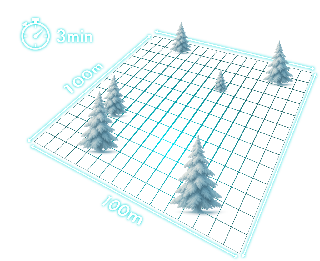 IVAQ Finder is capable of locating an avalanche beacon, also known as ARVA or DVA, in a 100m x 100m area in less than 3 minutes.