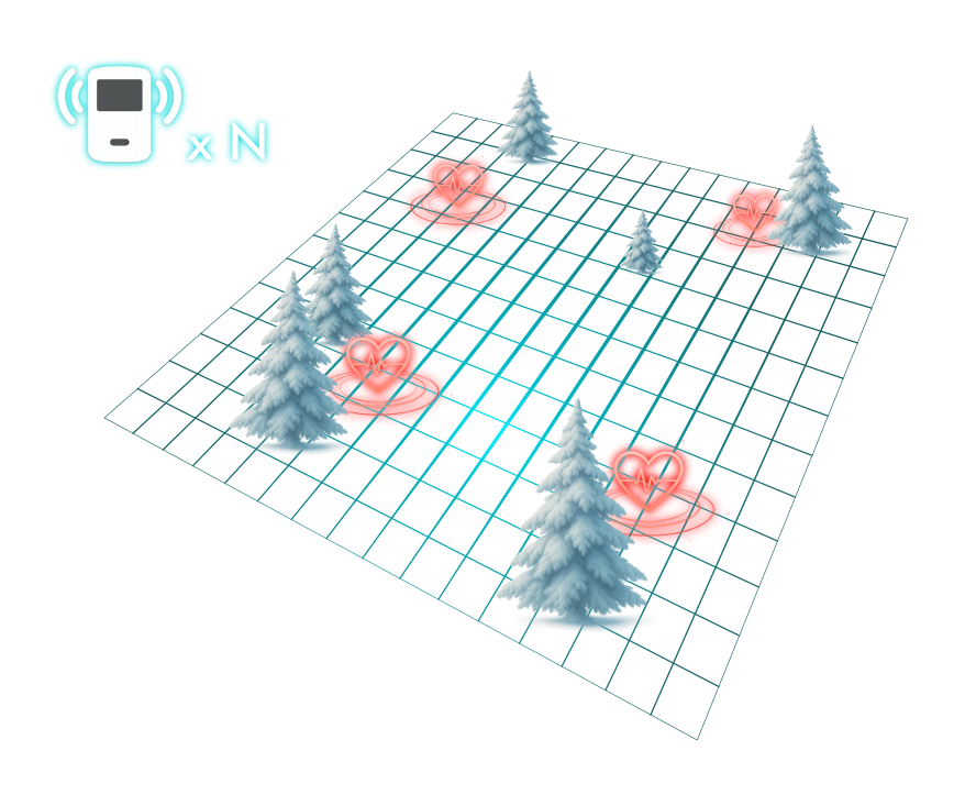 IVAQ Finder is capable of locating an avalanche beacon, also known as ARVA or DVA, in a 100m x 100m area in less than 3 minutes.